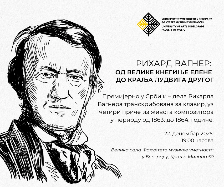 Музичко-наративно вече под насловом „Рихард Вагнер: Од велике кнегиње Елене до краља Лудвига Другог“ доноси нови поглед на живот и стваралаштво једног од најутицајнијих композитора у историји западне музике. Премијерни програм у Србији, посвећен Рихарду Вагнеру, биће представљен публици 22. децембра 2025. године у 19 часова, у Великој сали Факултета музичке уметности у Београду.