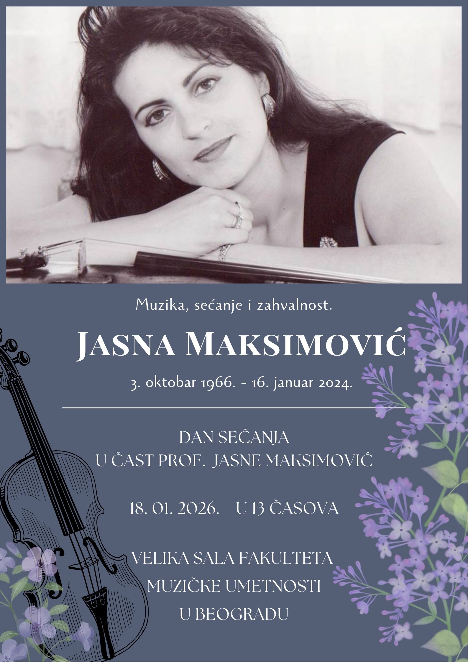 Велика сала Факултета музичке уметности, Краља Милана 50, Београд | петак, 23. јануар 2026. | 19:00 ч