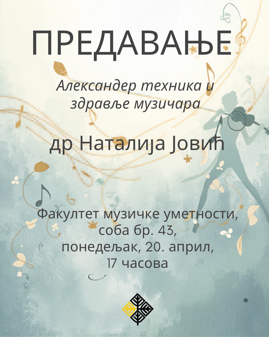 Соба 43, Факултет музичке уметности, Краља Милана 50, Београд | понедељак, 20. април 2026. | 17:00 ч
