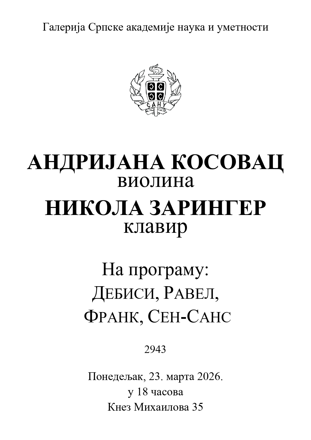 Поводом Четрнаестих европских дана старе музике Факултет музичке уметности вас позива на фестивал „ДАНИ СТАРЕ МУЗИКЕ 2026“ који ће бити одржан од 21. до 23. марта 2026. године на две концертне локације.