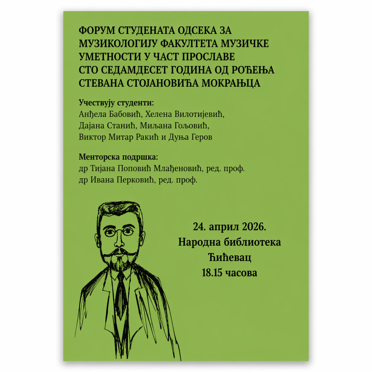 Младе виолончелисткиње, студенткиње Факултета музичке уметности из класе проф. Срђана Сретеновића, одржаће концерт у Легату Славенски у уторак 24. марта са почетком у 19 часова.