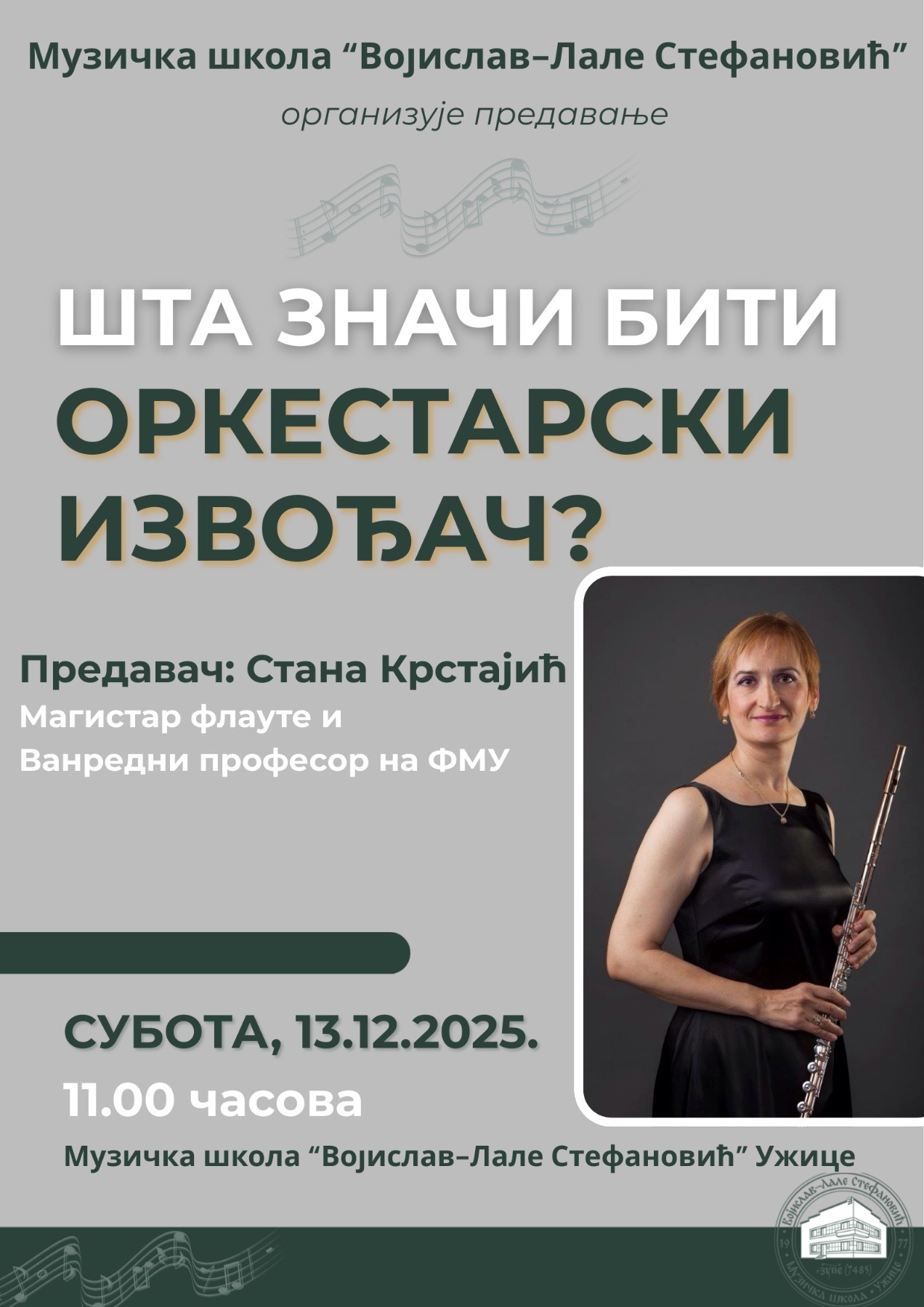 Ванр. проф. Стана Крстајић боравила је у Ужицу 13. и 14. децембра, где је у школи Војислав-Лале Стефановић одржала предавање ученицима и наставницима основне и средње музичке школе.